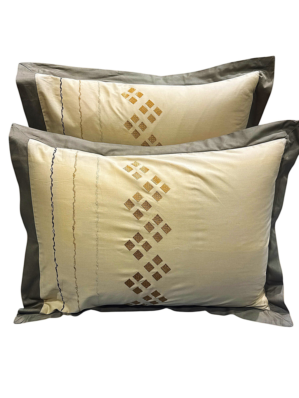 The quality of cotton dyed in soft earth tones exceeded my expectations. The embroidery adds unexpected but subtle color and structure to the bed set. I am more than pleased with my purchase.